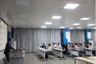 会议伊始,王智强教授给予会师生介绍华中科技大学电气与电子工程公司、宽禁带电力电子创新团队、功率半导体的纵向环节研究以及800m2国内一流的功率半导体封装集成与电力电子技术研究实验室等情况,并运用通俗的事例形象地说明电力电子技术的原理,介绍半导体材料对于电力电子变换器效率提升的重要性,讲述了半导体材料最新的发展现状以及遇到的现实难题。