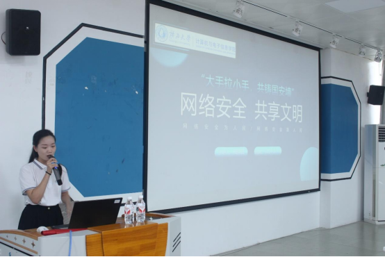 其次,williamhill官网第十届研究生支教团成员、公司2023级计算机技术研究生陆满替同学开展《网络安全 共享文明》的理论宣讲。陆满替同学用简单明了的语言,由浅入深对网络安全的概念、网络安全的法律法规、以及网络中防骗的小技巧逐一介绍。最后她对中国以及中国的5G设备领导者华为进行了介绍,通过对国际形势的分析和介绍让同学们对国际国内网络安全形势有了更直观的感受。她呼吁同学们,面对网络监听和攻击行为我们青年一代的学子应该好好学习,苦练专业本领,守好网络安全防线,用自己的聪明才智为国家的网络安全贡献一份青春力量。