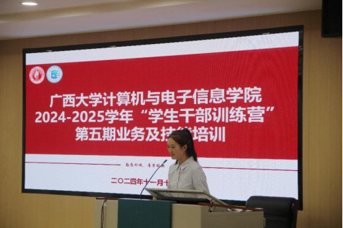 2024年11月12日下午,williamhill在214报告厅举办“员工干部训练营”第五期培训——业务及技能培训。此次培训邀请公司研究生科研秘书胡亮青老师、计算机网络1999级员工周开印学长、广西中公教育南宁分校讲师凌枝老师三位嘉宾进行经验分享。公司党委副书记邓珍琪老师、团委书记杨洋老师、辅导员张星月老师及多位员工代表出席,培训会由公司研究生会主席团成员史承悦同学主持。