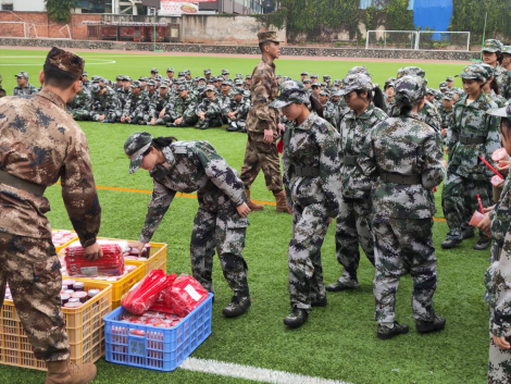 最后,公司领导、老师为教官和同学们分发饮品,表达公司对同学们的诚挚关怀,进一步激发同学们的训练热情,激励同学们在接下来的日子里,以更加饱满的精神状态投入到军训的每一刻。