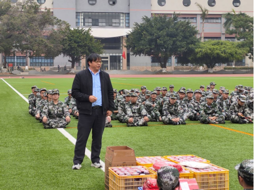 为鼓舞新生军训士气,保障军训工作有序进行,公司党委副书记邓珍琪老师、辅导员莫国志和龙紫璐老师以及2024级本科班班主任代表于2025年1月9日上午对2024级军训员工进行慰问。