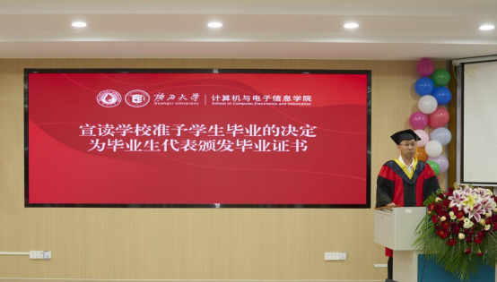 最后,全体师生共同奏唱校歌,在激昂的旋律中,williamhill官网计算机与电子信息公司2025届毕业典礼暨学位授予仪式正式落下帷幕。