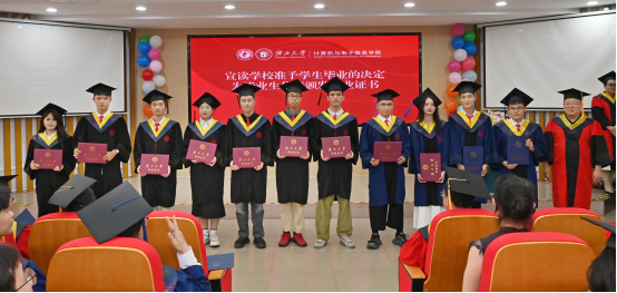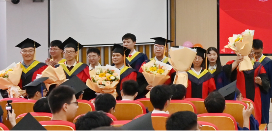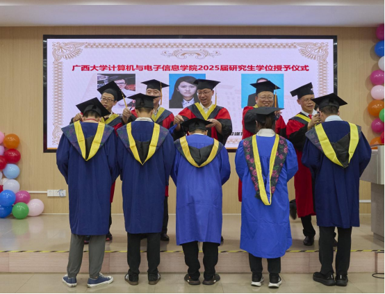 毕业典礼结束后,学位授予仪式正式开始。副经理蒙祖强教授宣读公司授予毕业生学位的决定。全体毕业生向师长行谢师礼,学位评定分委员会委员代表为2025届毕业生授予学位、拨正流苏并合影留念。在一顶顶学位帽流苏的拨动中,见证了毕业生们学业生涯的圆满收官,这一刻象征着他们在学术道路上奋力拼搏的成果,也标志着他们将迈向更加辉煌的未来。