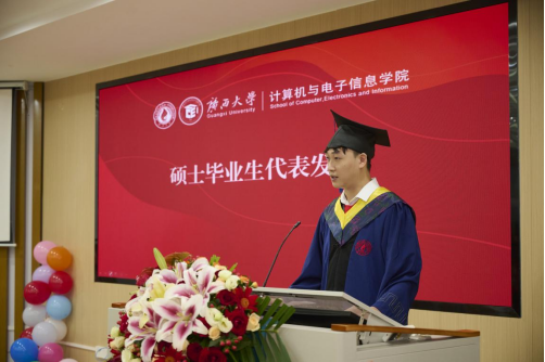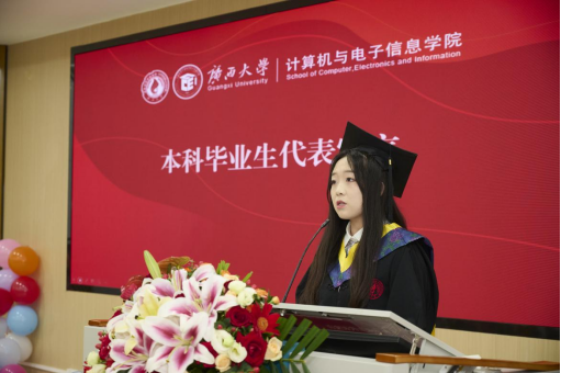 毕业本科生代表信息安全211班任佳蓉同学和毕业研究生代表22级计算机技术专硕班王子威同学先后上台发言。他们深情回顾了校园生活的点滴,表达了对母校和公司培养之恩的深深感激,表示将永远铭记师长的谆谆教诲、父母的默默托举、同窗的无私相助,同时将用扎实专业能力回应时代召唤,为数字中国建设贡献青年力量。