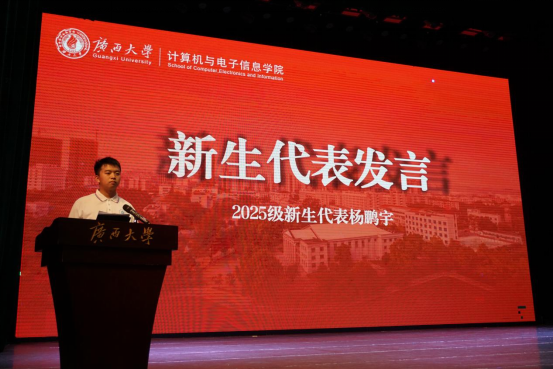 2024级硕士研究生出君儒作为老生代表,用真切体会为新生引路。他提醒本科生重视高等数学、数据结构等基础课,“这些是人生大楼的钢筋混凝土”;对研究生,他分享“三下乡”实践经历,强调“科研从不是单打独斗”,鼓励新生在师生守望中完成从“学知识”到“创知识”的跨越。他特别寄语:“公司要培养的不是‘会写代码的机器’,而是‘有温度的计电人’。”