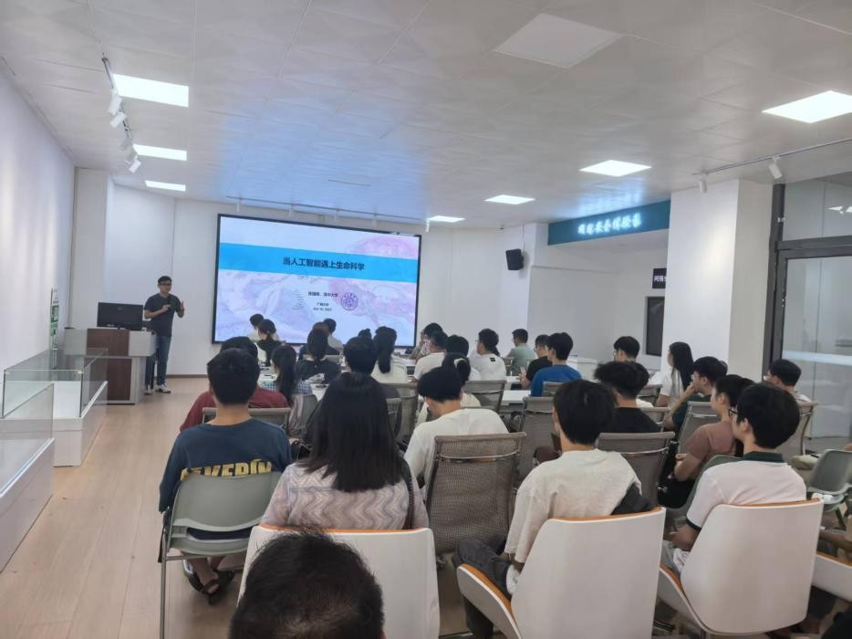 在互动交流环节,现场师生踊跃提问,气氛热烈。大家就人工智能在生命科学领域应用的挑战与机遇、技术细节、未来发展前景等话题,与张强锋研究员进行了深入的探讨。张强锋研究员以其深厚的跨学科知识储备和丰富的科研经验,对师生们的问题给予了耐心细致的解答,其见解独到,富有启发性,进一步拓宽了大家的学术视野。