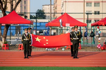 公司院旗在国旗护卫队的护送下庄严前行,全体师生高唱国歌,向国旗行注目礼,开幕式在肃穆而激昂的氛围中拉开序幕。