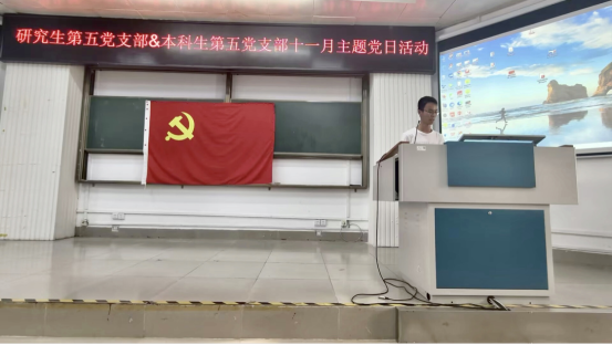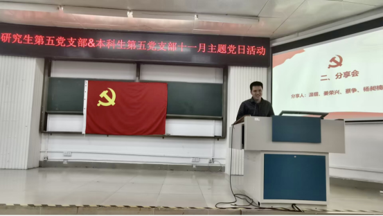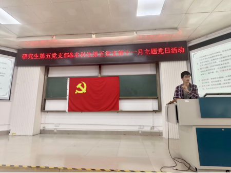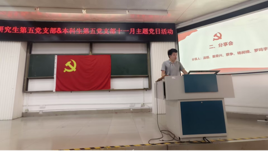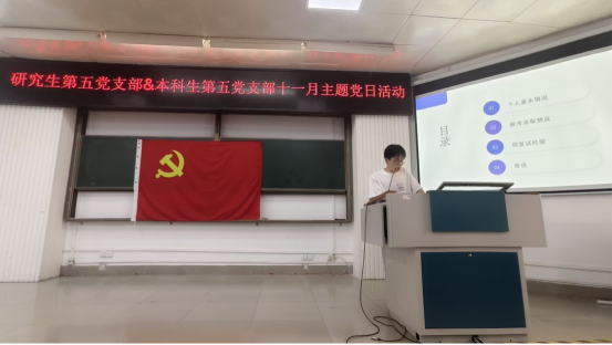 本次主题党日活动分为两个部分进行:一是公司党委专职组织员、本科生第五党支部书记薛金凤同志讲《加强党性修养,做合格的共产党员》专题党课;二是考研经验分享。
