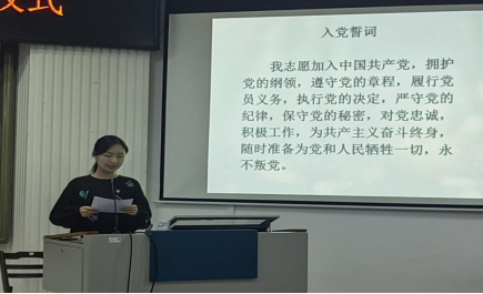 入党宣誓后,新发展党员代表李英萍同志发言。她表示,全体新党员非常感谢党组织的培养,我们要认真践行对党的誓言,树立终身学习的观念,提高思想政治修养,提高为人民服务的本领和能力,矢志不渝为共产主义奋斗终身。