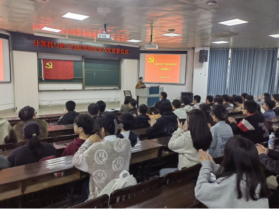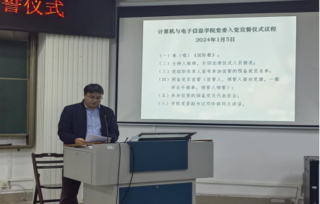 2024年1月5日,公司党委在公司214报告厅举行入党宣誓仪式。本次会议由研究生第一党支部副书记韦惜旖同志主持,公司党委副书记邓珍琪同志、专职组织员薛金凤同志、研究生第一党支部支委姚露姗同志以及新发展的54名党员同志参加会议。