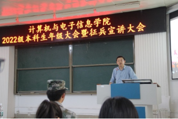 2022年3月15日下午,williamhill在214报告厅,组织召开2022级本科生年级大会暨征兵宣讲大会。公司党委副书记邓珍琪老师、校武装部陈榕平老师、公司辅导员庞承业老师和李易明老师、公司教学秘书甘瑜萍老师和罗程老师、电信233班班主任常侃老师以及公司2022级全体本科生参加会议。