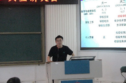 然后,2019级王志鹏和朱硕隆同学分享了个人学习工作经历、学习方法、科研竞赛、社会实践、员工工作服务、考研、就业等情况,并给同学们提出一些建议。