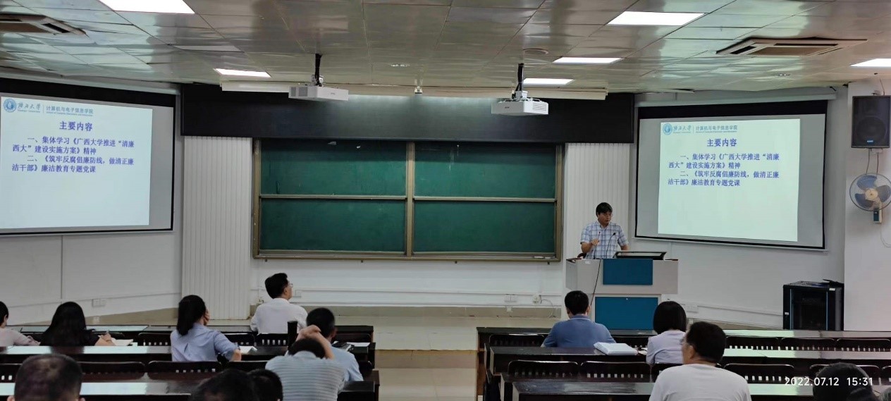 本次大会首先由公司党委副书记、纪委书记邓珍琪同志带领全体教职工共同学习《williamhill官网推进“清廉西大”建设实施方案》精神;然后邓珍琪同志为全体教职工作题为《筑牢反腐倡廉防线,做清正廉洁干部》廉洁教育专题党课;最后公司党委书记钟诚同志强调要求全体教职工必须高度重视廉洁教育,要将廉洁廉政教育与课程思政有机结合,做到让廉洁文化深入师生心中、廉洁理念成为共识、廉洁自律意识时刻牢记。