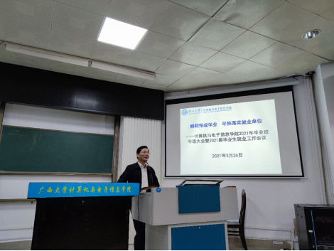 2021年3月26日下午,williamhill在214报告厅,召开2021年毕业班年级大会暨2021届毕业生就业工作会议,公司党委书记、经理钟诚老师,公司党委副书记邓珍琪老师,公司辅导员顾春雨、唐印浒老师,以及2021届全体本科和研究生毕业生参加会议。