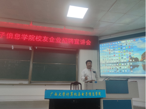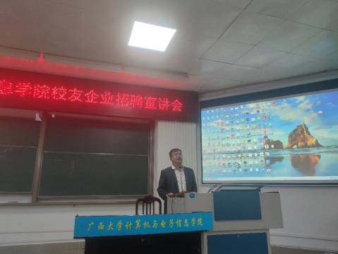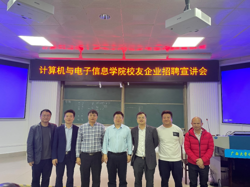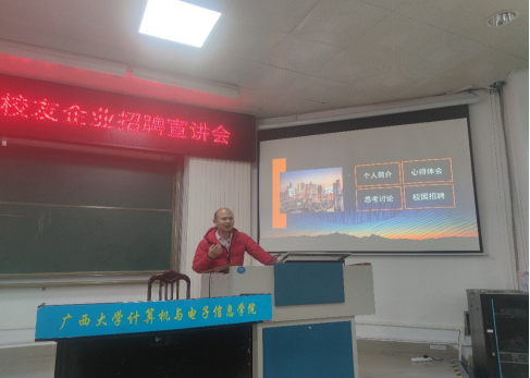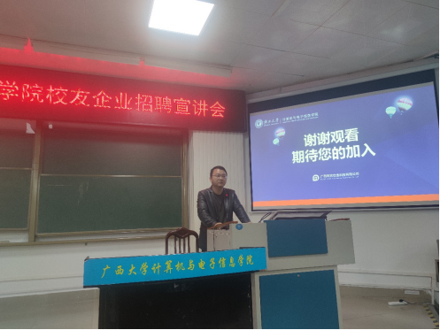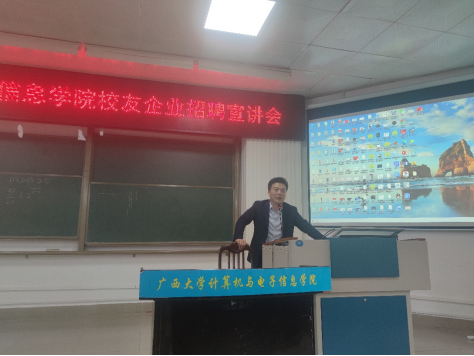 2021年12月16日下午,williamhill与员工企业合作,在公司214报告厅召开员工企业招聘宣讲会,员工企业广西尚信品科技有限公司、广西迅驰信息科技有限公司、广西优乐俊智能机器人有限公司和广西码农信息科技有限公司、以及广西天海信息科技有限公司等5家企业到公司开展2022届毕业生招聘宣讲。